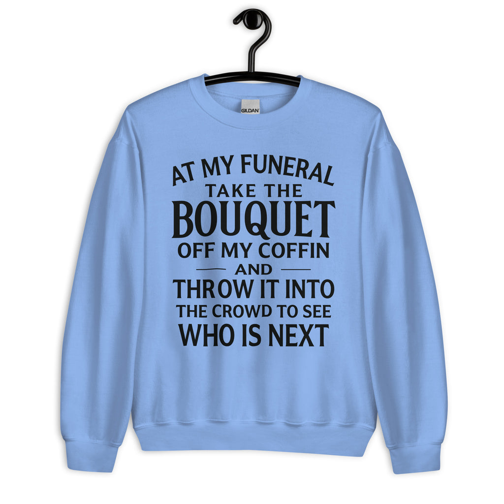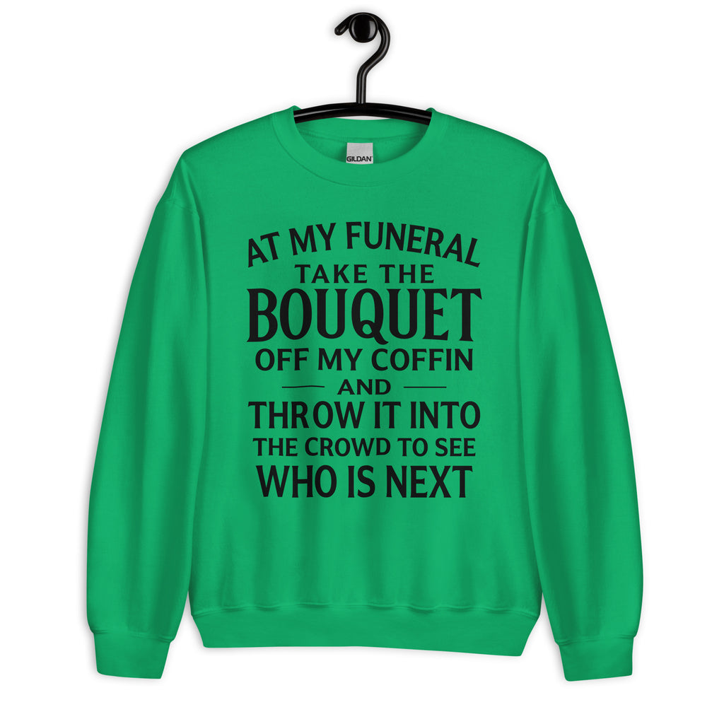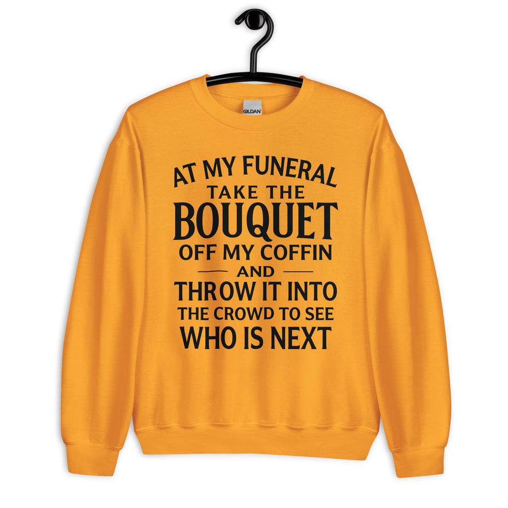 For the days when you’re done explaining yourself. This tee keeps it simple and brutally honest with the line “At My Funeral Take The Bouquet" Clean design, bold attitude, and perfect for anyone who’s allergic to nonsense and loves their personal space a little too much.
